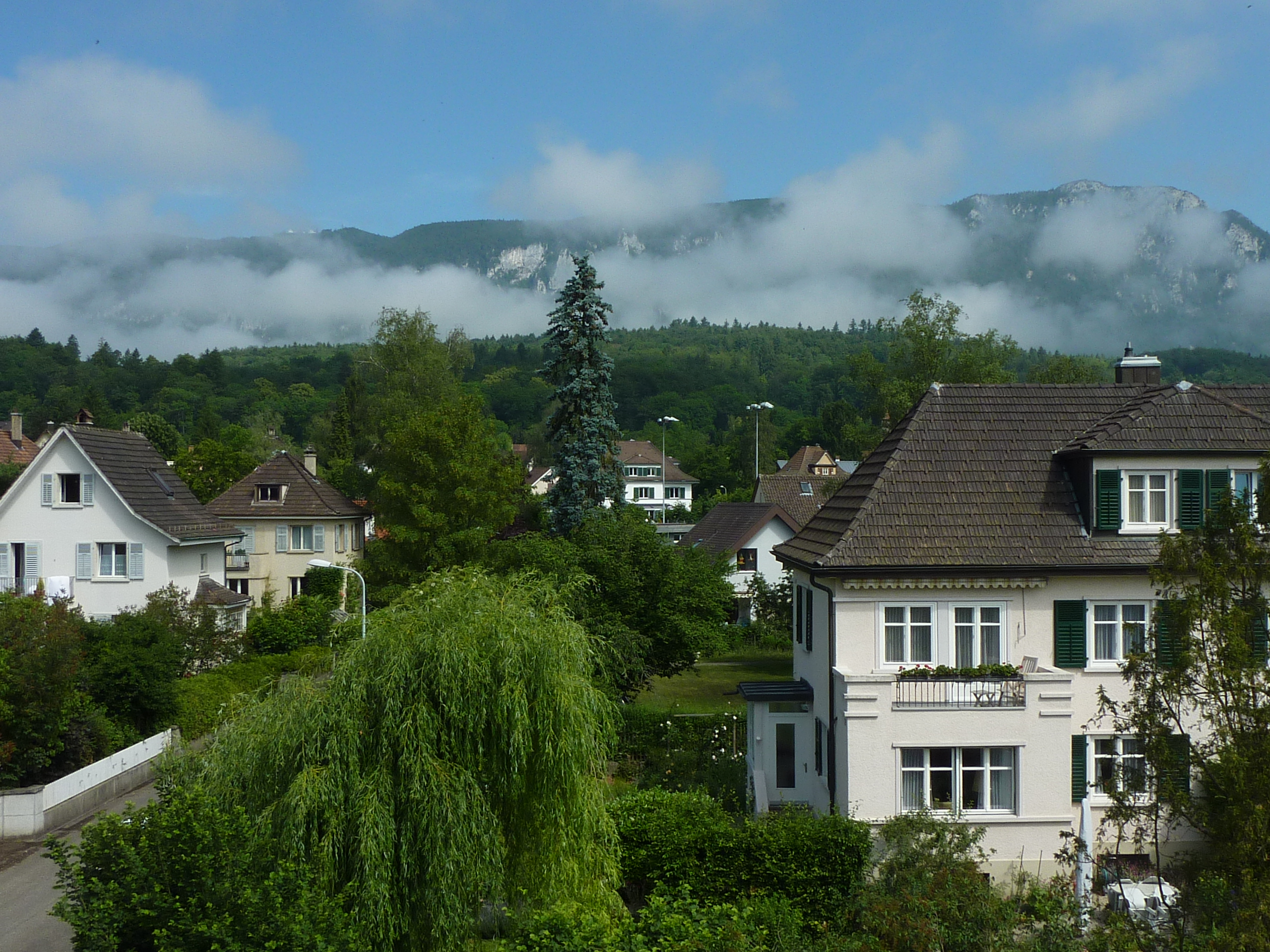In the last days the mountain Jura in the back (northern direction) was not visible because of damp and clouds, this situation often occurs when humid air moves from south to north and then is cooling when dislocated to higher altitudes, this due to the Jura. Today it is the first possible moment to take the picture. Yesterday evening a very heavy storm took place here in Solothurn, thunders during several hours. And finally quite an amount of rain, what is very important in these actually dry summertime.
