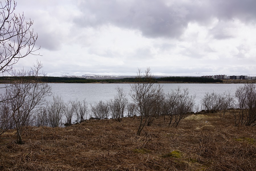 Here is the April's picture. When it was taken, the heat was around 6 ° C and cloudy. The mountains you see in the background still have snow to attract people skiing. The water level in Raudavatn is high due to more than ordinary rainfall and the lupine is just emerging. It has been unusually cold last weeks and yesterday it was snowing n the mountains but it didn't stay long.