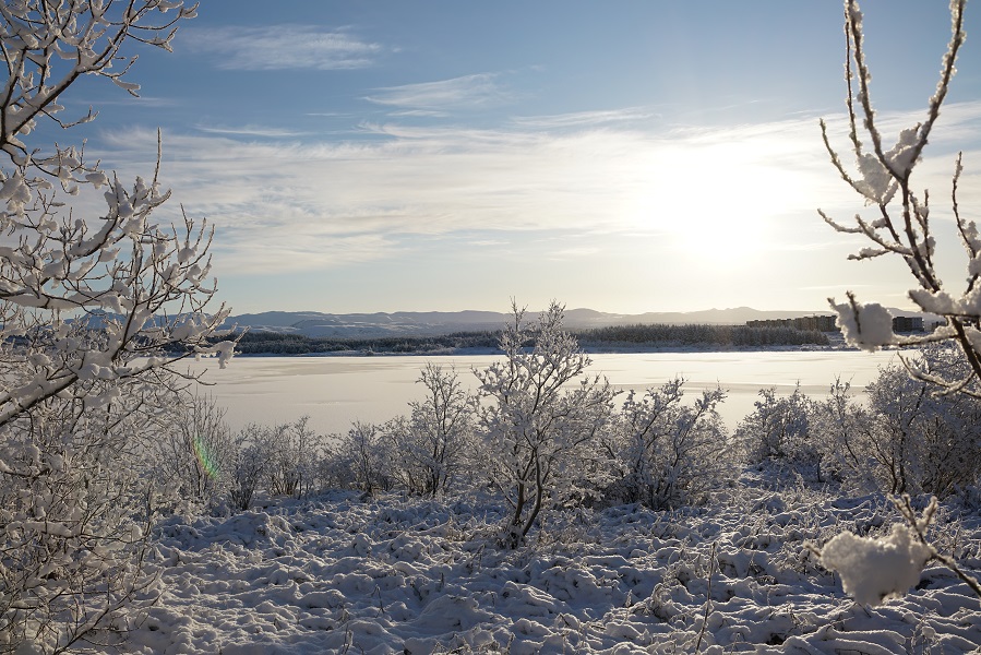 It was Sunday and a very beautiful day, sunny and perfect for taking a photo in Rauðavatn. The first snow of the winter has come and the temperature was about - 8 ° C which is unusually cold for this time of year. The branches of the trees were fuzzy by snowfall earlier this week. People has started to go skiing in the mountains which is very early, usually it does not begin until January. The lake is covered with ice and snow.