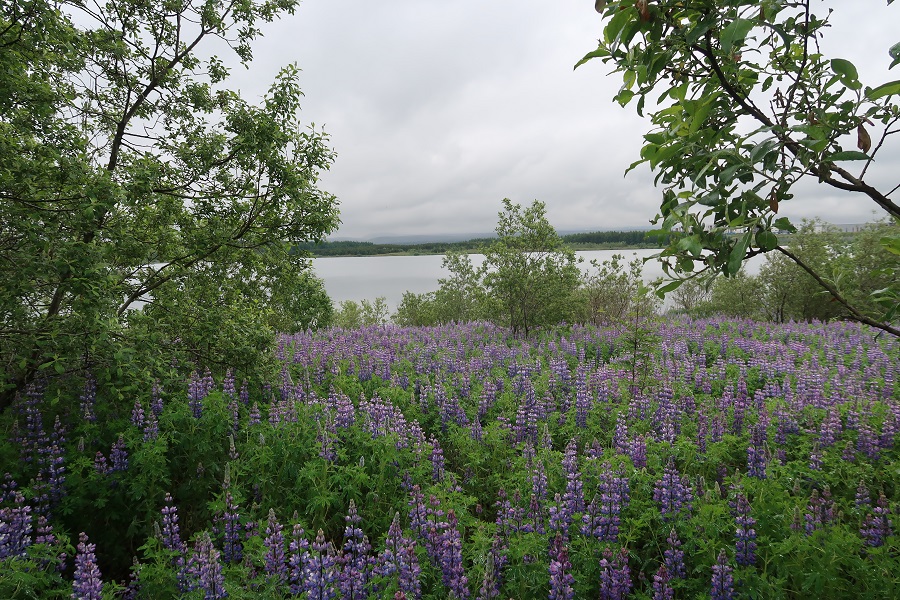 There has been little sunshine here during the last two months or we saw it only about 70 hours in June. It has not been like that the last 100 years. It has been raining almost every day throughout the month in the southwest part of the country where Rauðavatn (Red lake) is. The temperature on the day the image was taken was about 9°C. The lupine blossoms and the clouds cover the mountains. The lupine has flourished later than before but the trees and flowers are beautiful - they get enough moisture. We are having difficulties with our bees because of the rain and no sunshine, we have had to feed them until now.