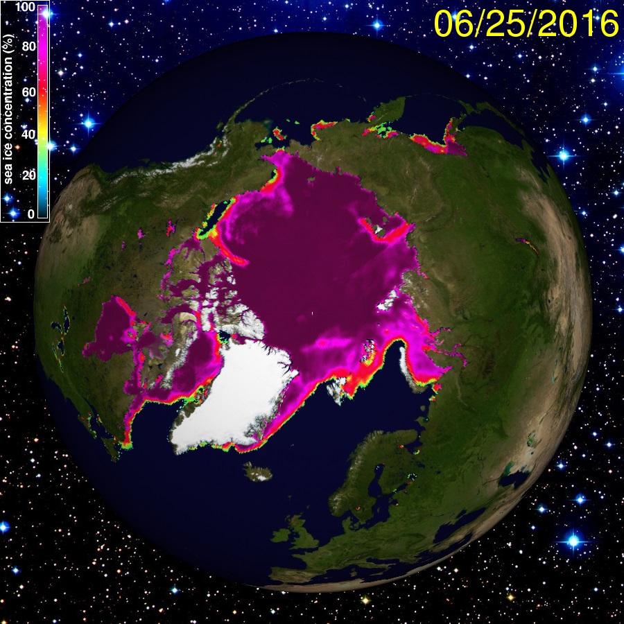 June 25th, 2016: Arctic Sea Ice Cover Pictures with the friendly permission of the Polar Research Group > Department of Atmospheric Sciences > University of Illinois; arctic.atmos.uiuc.edu