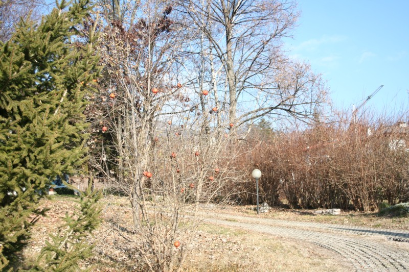 No more leaves are on any deciduous plant. Grass is now mostly yellow, the frost period having brought temperatures well below zero. No snow has appeared yet in this area. After a very dry (and mild) autumn, winter continues with a long dry spell, with a “monotonous” clear sky.