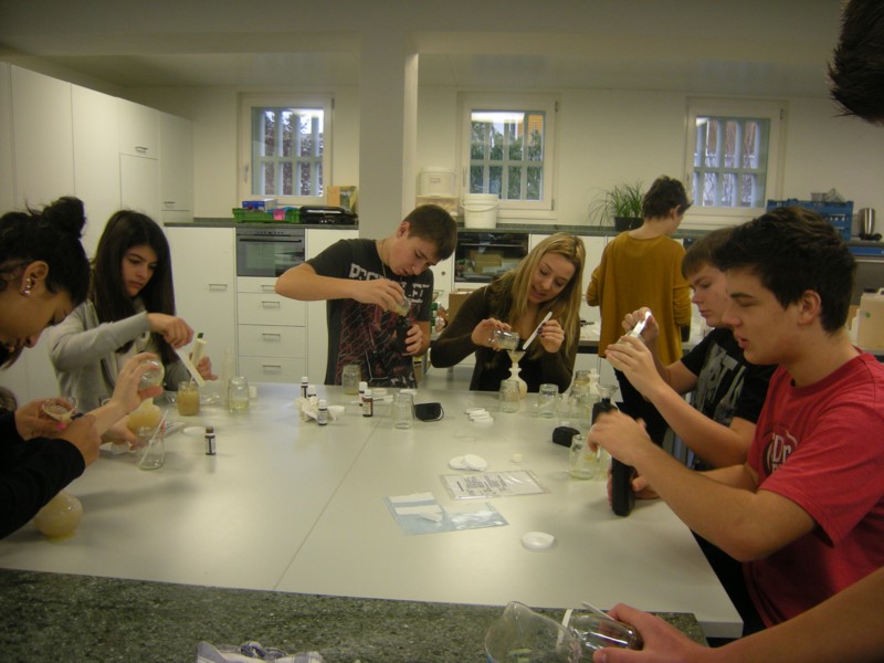 Some of my students are filling their self made shampoo into a dispenser.