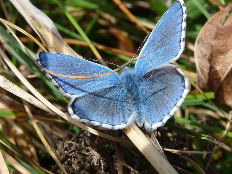 What a beautiful colored gossamer-winged butterfly (Bläuling) - look at the pattern on its antenna.