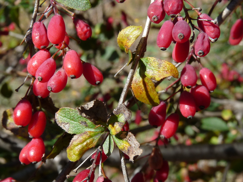 In our region most of these barberry bushes [genus Berberis] (Berberitze) were removed because they can be an intermediate host of a cereal rust. The berries are edible and taste sweet-sour.