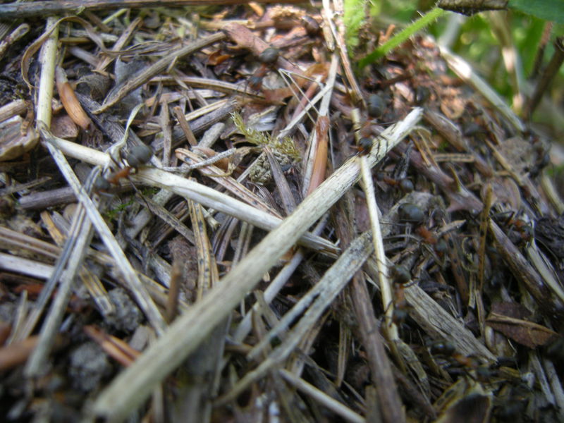 Use the player: You can hear some birds and again the loud drone of bees collecting forest honey. / Picture: I discovered a new ant hill (red wood ant [Formica rufa] (Waldameise))!