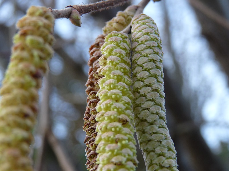 January 2023: Hazel [corylus avellana] (Haselnuss): Today several hazel blooms started to spread pollen - normally a joyful herald of early spring! But this time it's the sad evidence that we don't get real winters any more. We always had Christmas thaw or some mild west wind days between the cold snaps. But now we have weeklong mild days with rain up to 3000m asl. (!), rarely interrupted by a short cooling. We discuss about +1.5°C or +2°C, but in fact it's already more than both in my region: often we have temperatures of 5 or 10 or even 20°C higher-than-normal (have a look at my weather diagrams). I love spring and flowers but at this time of the year I prefer having winter and seeing frostwork!