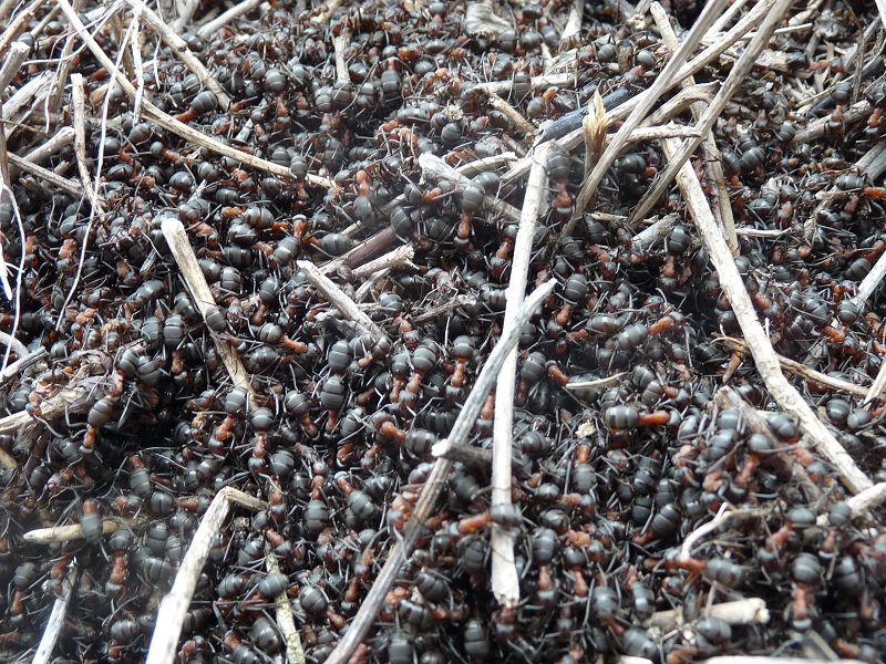 April 2023: Red wood ant [Formica rufa] (Rote Waldameise): Although the weather was cool and wet the red wood ant came out of hibernation last week. They probably would have liked to warm up in the sun after a 6 month sleep (?), but at the moment it's colder (with clouds, fog and rain) than on many January days. Ant nests exist for several years, so you can visit it time and again and watch the amazing colonial insects: It seems that the red wood ant even has a sensory organ for magnetism!