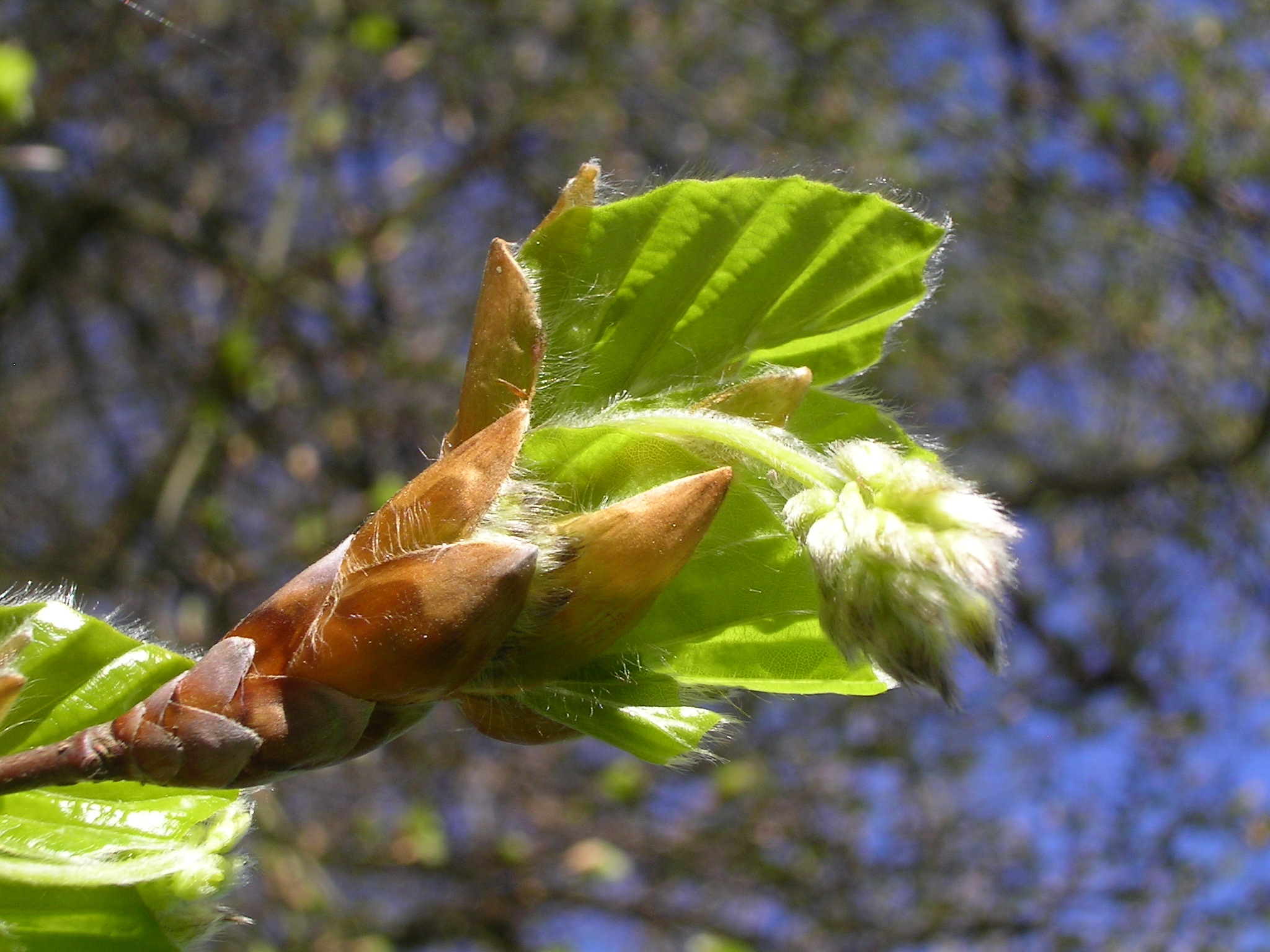 The male beech blooms come out of the buds even before the leaves are unfolded.