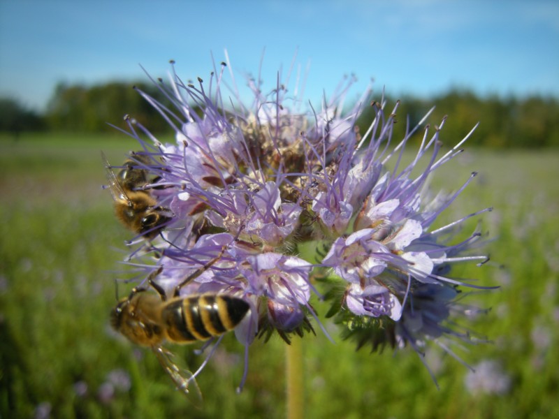 This farmer sowed Phacelia after harvesting the barley, and it blooms even so late in the year - the bees love these flowers, especially in autumn.