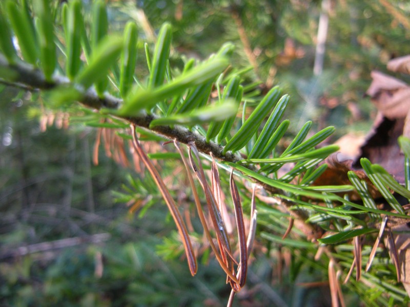 I wondered whether green-down can be observed at conifers. From above the twigs are green, but when I had a look from below I saw quite a lot of brown needles. I wonder whether they turn down when they get brown and when / where new needles appear on old twigs.
