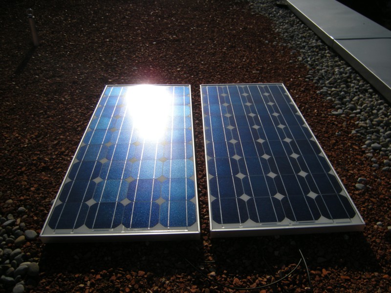 These two solar panels we put on the school building's roof are connected to the solar charge controller.