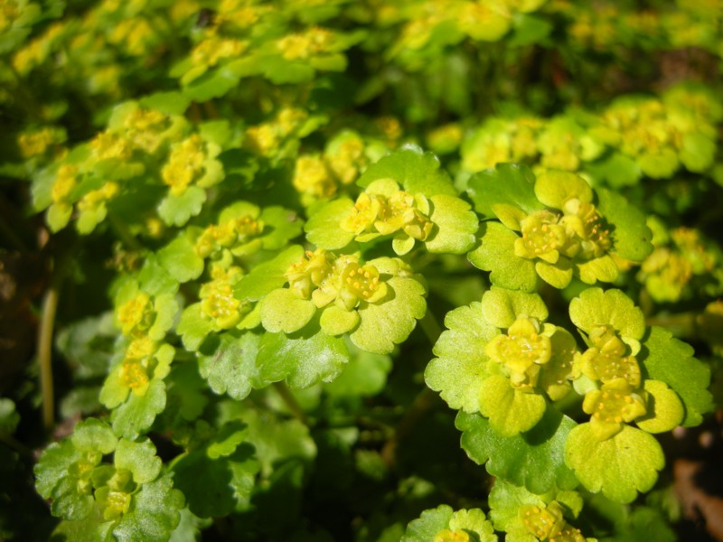 Along the forest trail I can see hundreds of alternate-leaved golden saxifrage [Chrysosplenium alternifolium]. They form yellow islands in the forest.