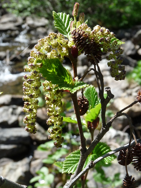 In July the alder tree [genus Alnus] (Erle) was in bloom in the Alpine region.