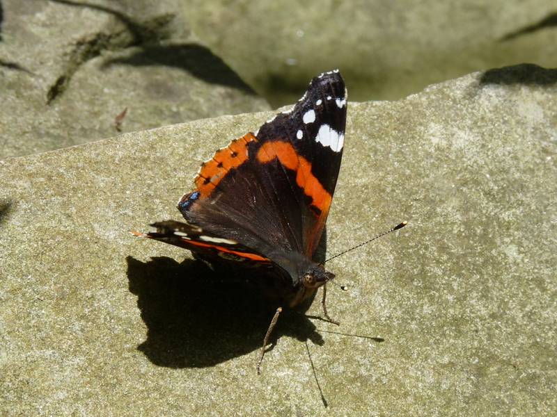 This red admiral [Vanessa atalanta, syn. Pyrameis atalanta] (Admiral) visited a certain spot on a willow for several times to suck a white substance.