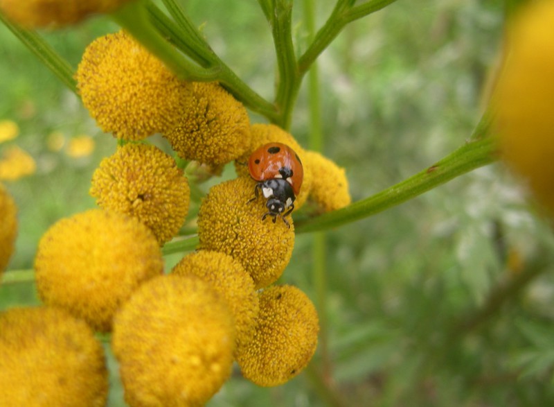 On the same plant as the ladybug larva I observed also an adult indigenous ladybug.