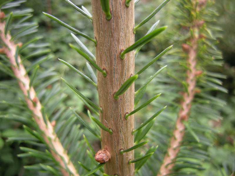 A this year's fir's main shoot holds also many needles but they are off-standing and offer a completely different aspect than the spruce (see that picture).