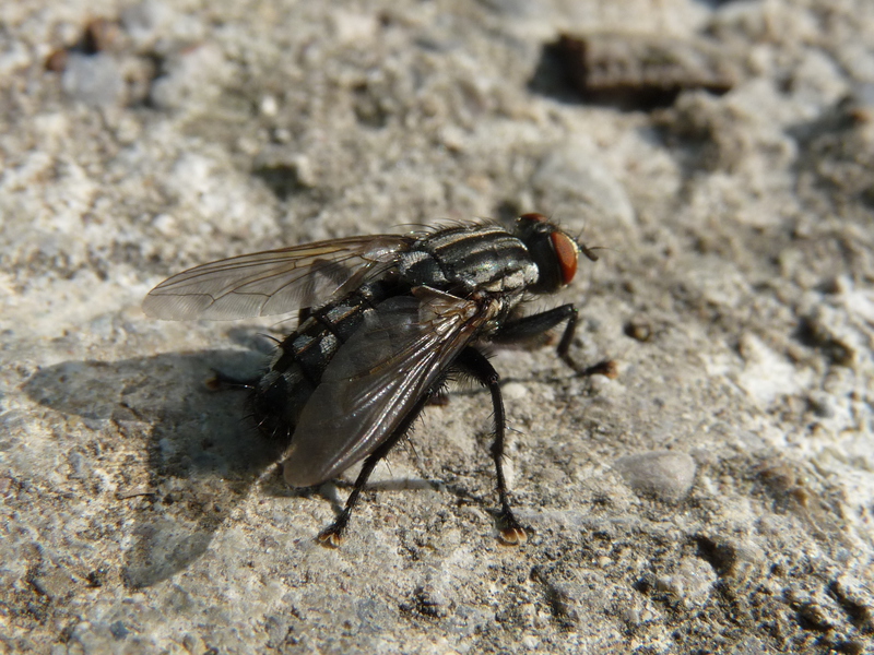 This common flesh fly [Sarcophaga carnaria] (Graue Fleischfliege) let me take a close-up of it on a stone in the forest.