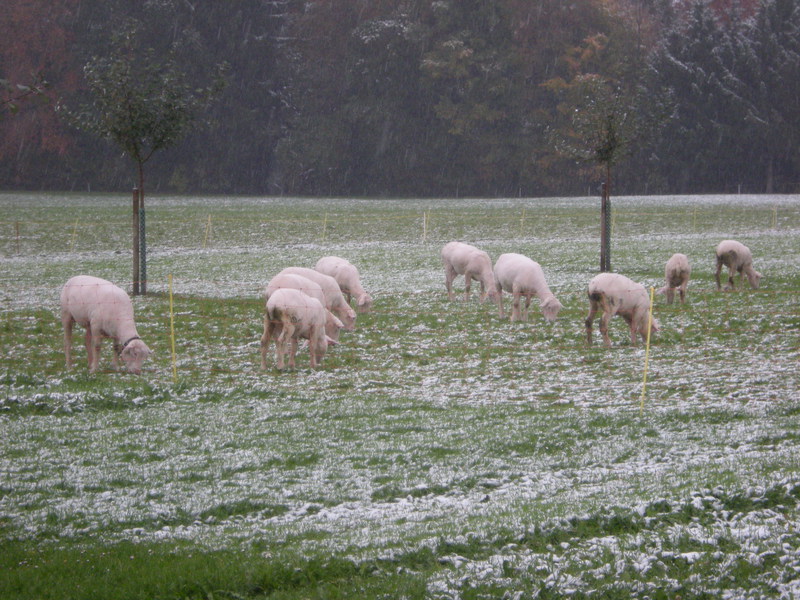 (Use the player above.) I guess these shortly before shorn sheep feel cold in this early snow.
