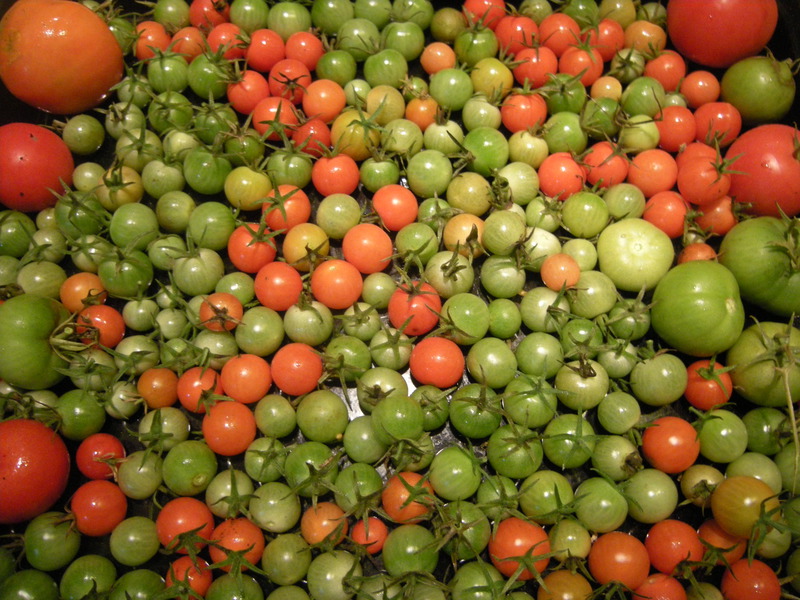 Before the first frosty night with snow at the end of October I harvested all the remaining tomatoes: 325 tomatoes that should after-ripen in our cellar now.