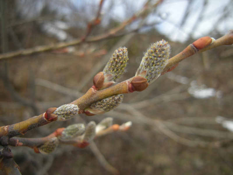 At this altitude (1400m a.s.l.) the willow catkins just only came out of the buds and will bloom some days later warm spring weather provided.