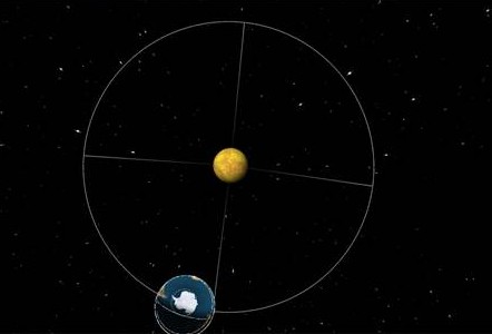 This image shows the Earth's position on its orbit around the sun on January 1st, looking up to the southern hemisphere. © SWISS WORLD ATLAS interactive 2010 - 2012