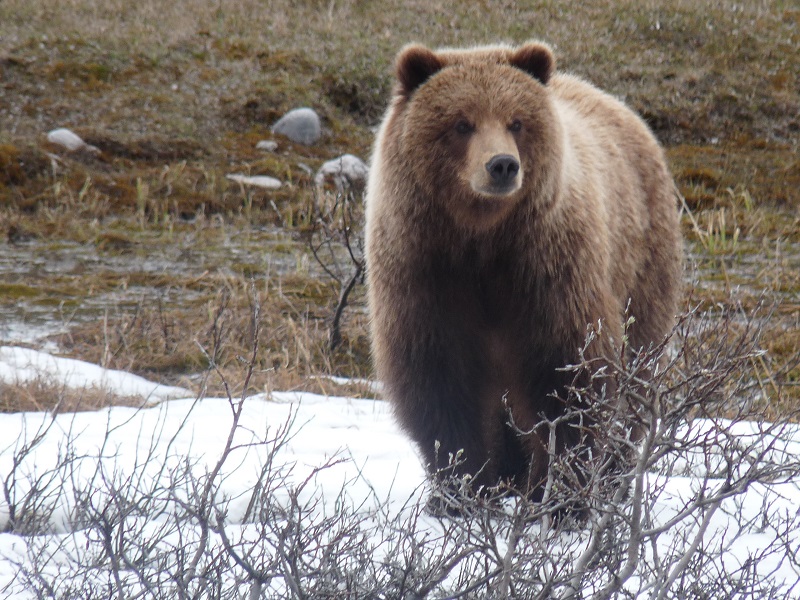 This bear looks beautiful and tries to sniff us out - but it was definitely too close (< 30ft) to really enjoy it... Ein wunderschönes Tier, so ein Bär, der gerade versucht, uns zu "erschnuppern" - aber er war wirklich etwas zu nahe bei uns (< 10m)...