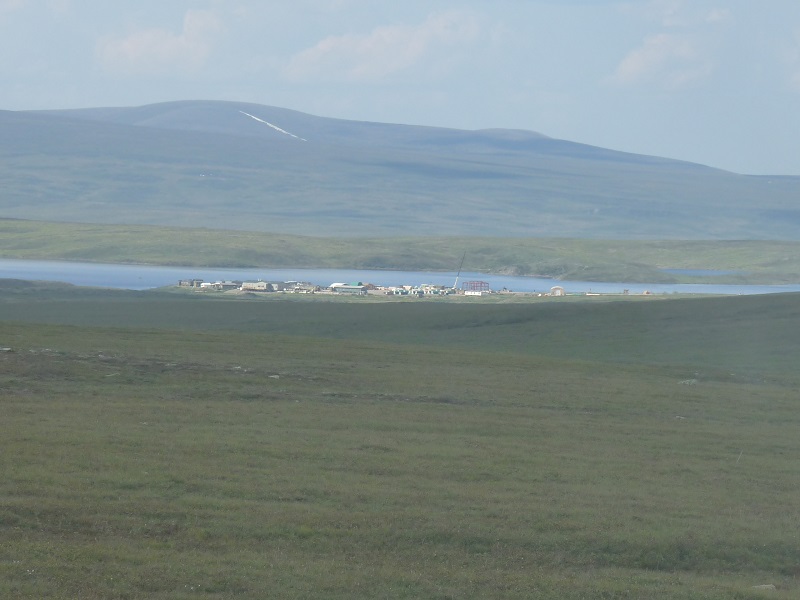 Toolik Field Station and Toolik Lake seen from the Dalton Hwy some miles away. Die Toolik Field Station und der Toolik Lake wie man sie vom Dalton Hwy aus einigen km Entfernung sieht.