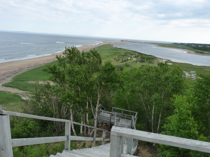 View down to the shore from the previous location of the whale research station at Portneuf-sur-mer. Blick zum Meer vom alten Standort der Walforschungsstation in Portneuf-sur-mer.