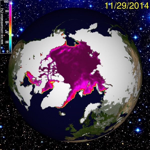 November 29th, 2014: Arctic Sea Ice Cover Pictures with the friendly permission of the Polar Research Group > Department of Atmospheric Sciences > University of Illinois; arctic.atmos.uiuc.edu