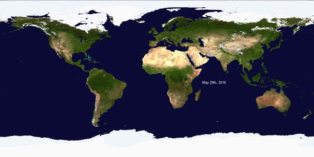 May 29th, 2016: World Wide Daily Snow and Ice Cover Map Light blue areas indicate the sea ice extent, white colors indicate all other areas covered in snow. The cryosphere which are areas covered by ice, snow, glaciers, or permafrost is an extremely dynamic part of our global system. Changes in seasons & climate bring great changes to the Earth's cryosphere.